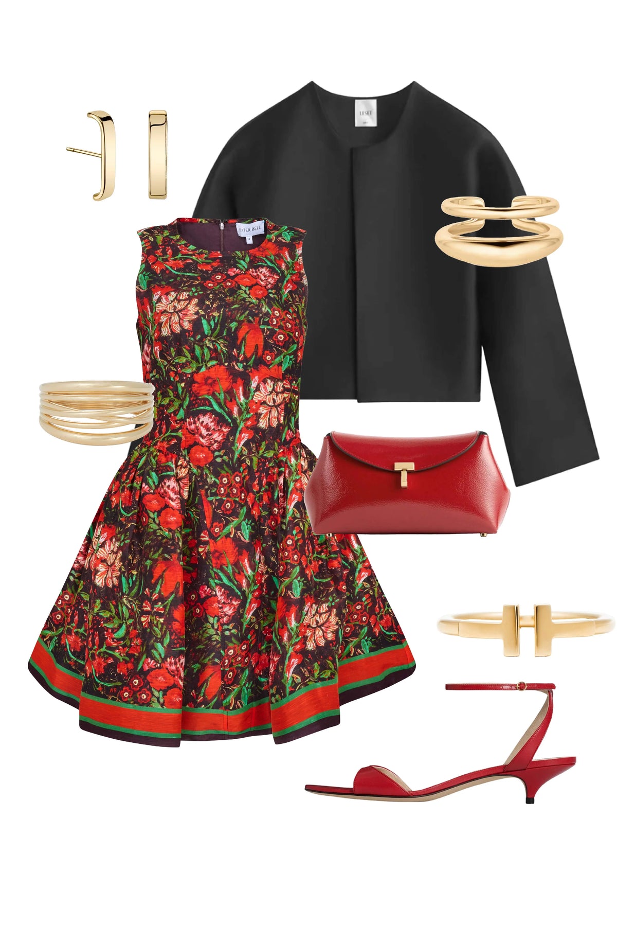 The Layne Dress makes its debut in our signature holiday floral print on a linen silk fabric. A crew neck sleeveless mini dress with a fit and flare silhouette that is both flattering and fun for any party on your schedule this season. The addition of a contrasting border at the hem adds a tailored finish to the bustled full mini skirt.