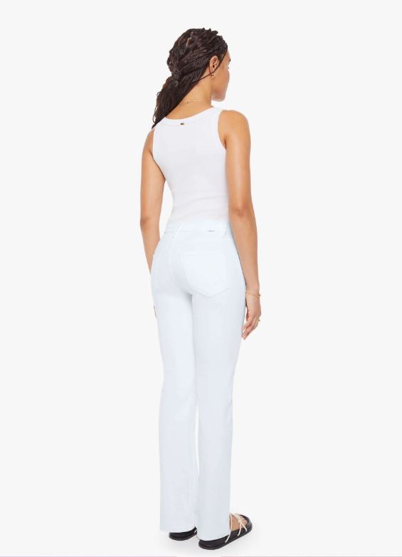 A high-rise straight leg jean with a zip fly, 30-inch inseam and a clean hem. Cut from semi-rigid SUPERIOR denim, Totally Innocent is a classic white with tonal hardware.