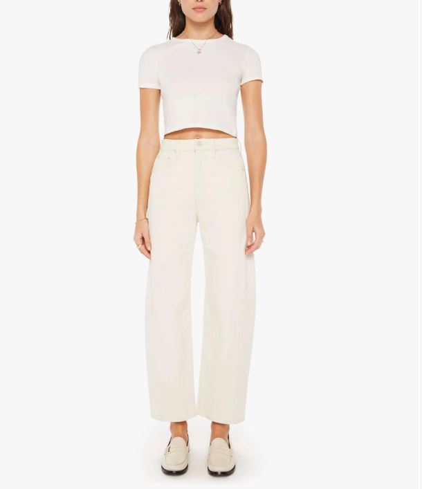 An expanded collection of foundational pieces designed for All Day, Every Day. Created for versatility, layering, and year-round wearability, these are the pieces you will never stop reaching for. A super high-waisted jean with a wide, curved leg, a 29" inseam, and a clean hem. Cut from a SUPERIOR cotton blend with a touch of stretch, Act Natural is a creamy white hue with tonal hardware.