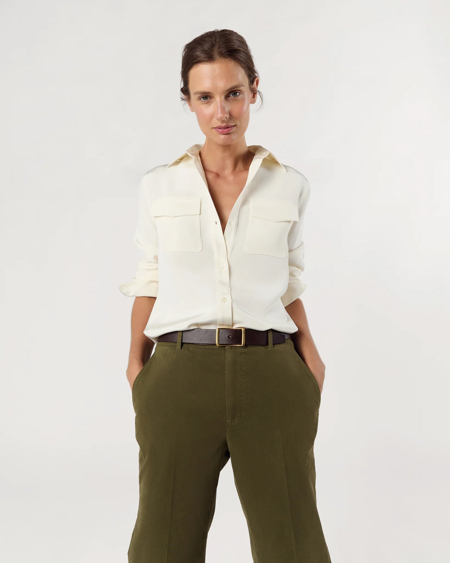 A true all-purpose blouse — the Hannah is a cool, utilitarian take on our classic shape, with sleek chest pockets and generous fit through the body (because who doesn't like being draped in more silk?) It's made up in our forever-favorite weighty-yet-seasonless 40momme silk that feels like a dream against your skin.