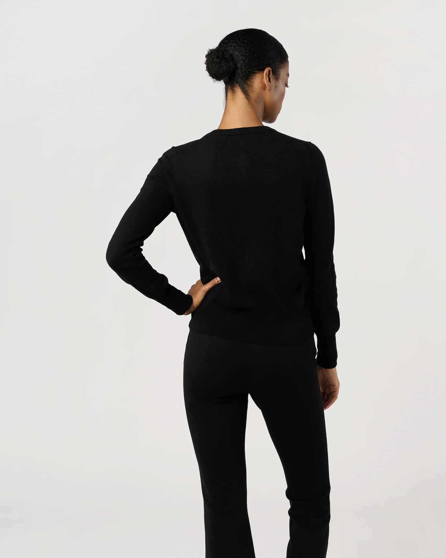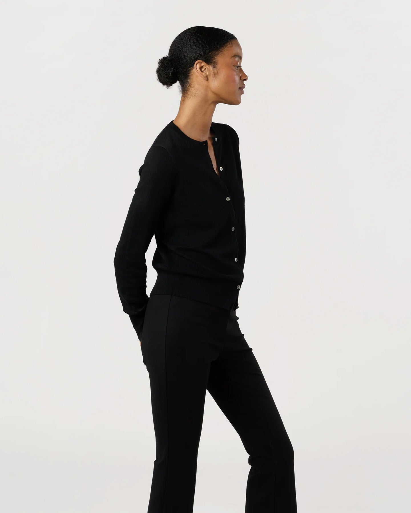 The Rosie is a perfect throw-it-on-when-you're-cold-because-it-goes-with-everything sweater. It'll even go with nothing — we love the way a cardigan looks worn as a shirt. This one is made from a buttery-soft cotton/silk knit plaited with elastane (meaning stretch yarn is actually knit into it) so that it hugs the body without feeling tight or overly slinky.
