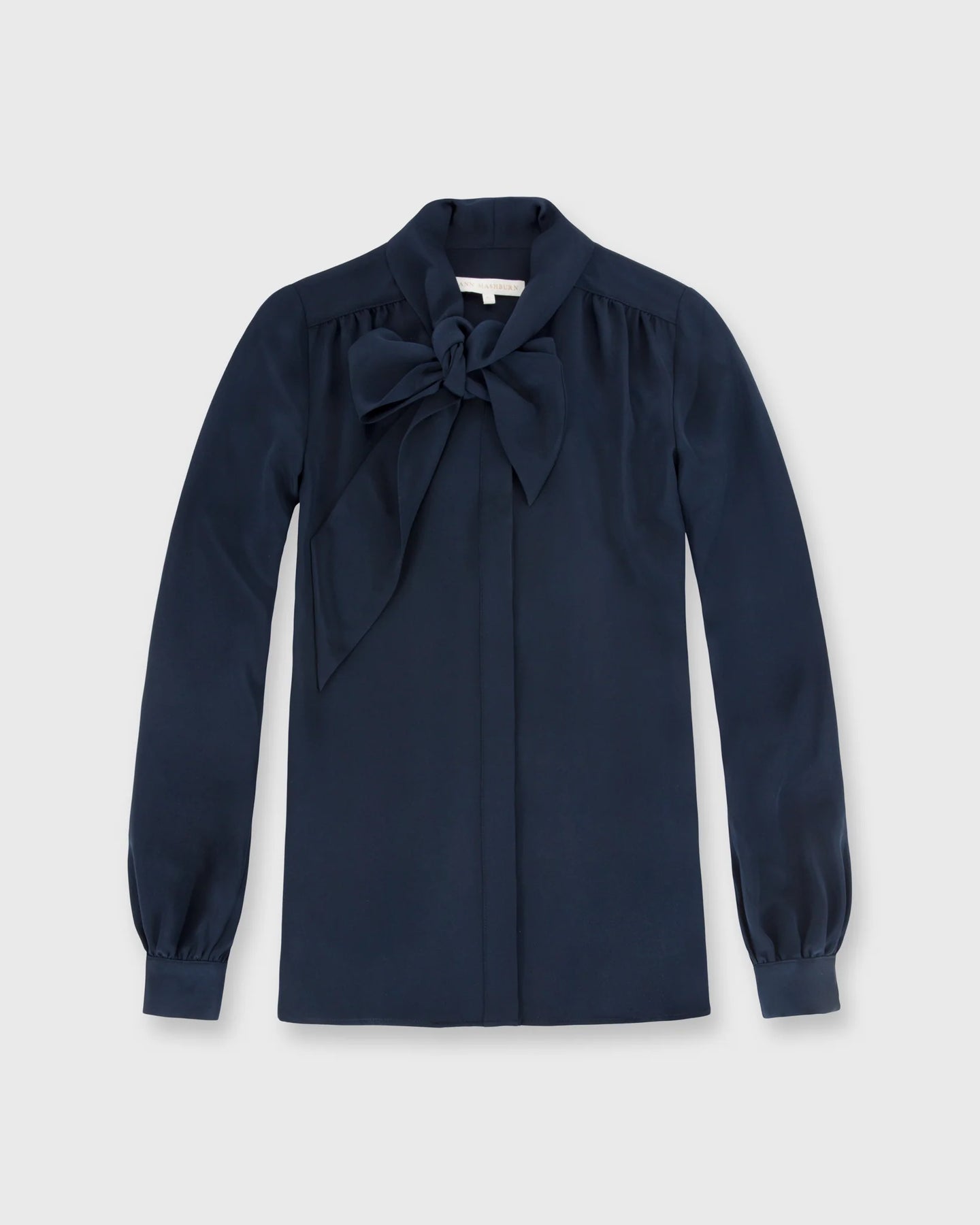 We've been making (and wearing) this blouse since 2013 for a reason. It's the kind of piece that instantly elevates the rest of your look, with a pussy-bow silhouette that can be fully tied at the neck or just loosely knotted. Simple, elegant, easy to wear. And the fabric is a dream: a luxe, weighty 4ply Navy silk with a finish that's lustrous but not too shiny. One of our forever favorites.